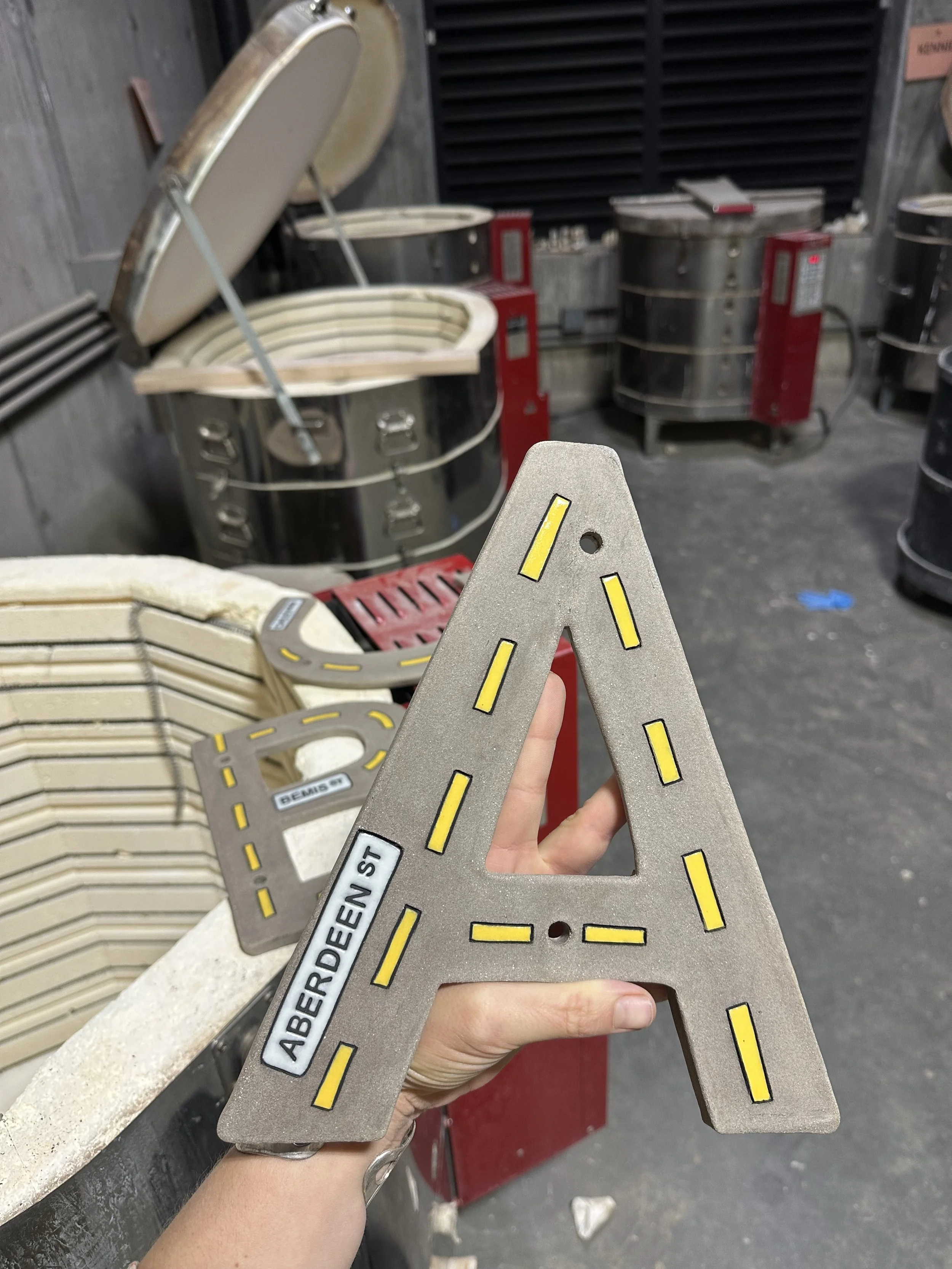 I got the idea to make the letters look like roads after I cut out A, B, C and realized the gray clay and the curves of the letterforms already looked like roads. It definitely felt like an “AHA moment” when I decided I could name the roads after streets in Littleton.