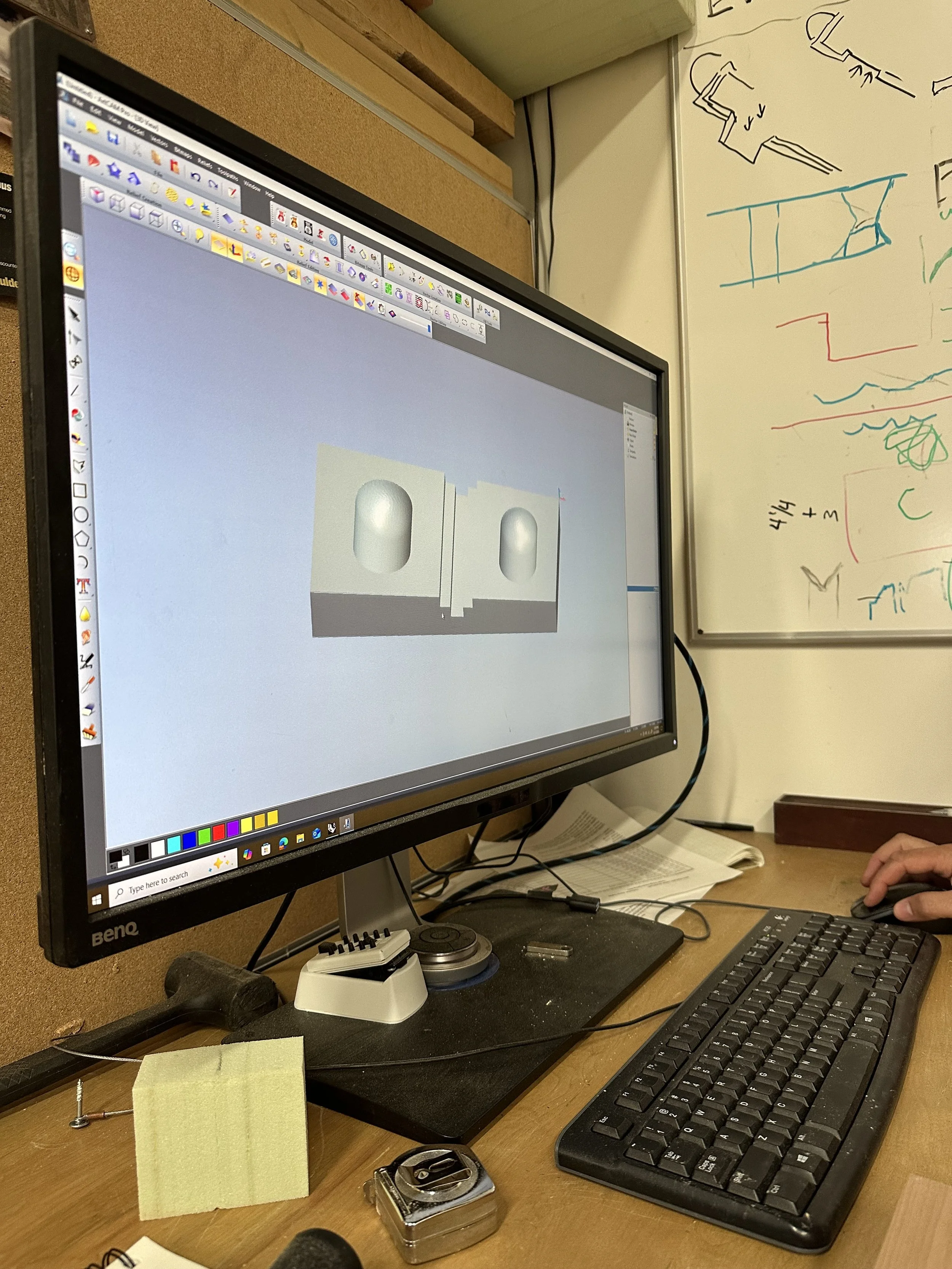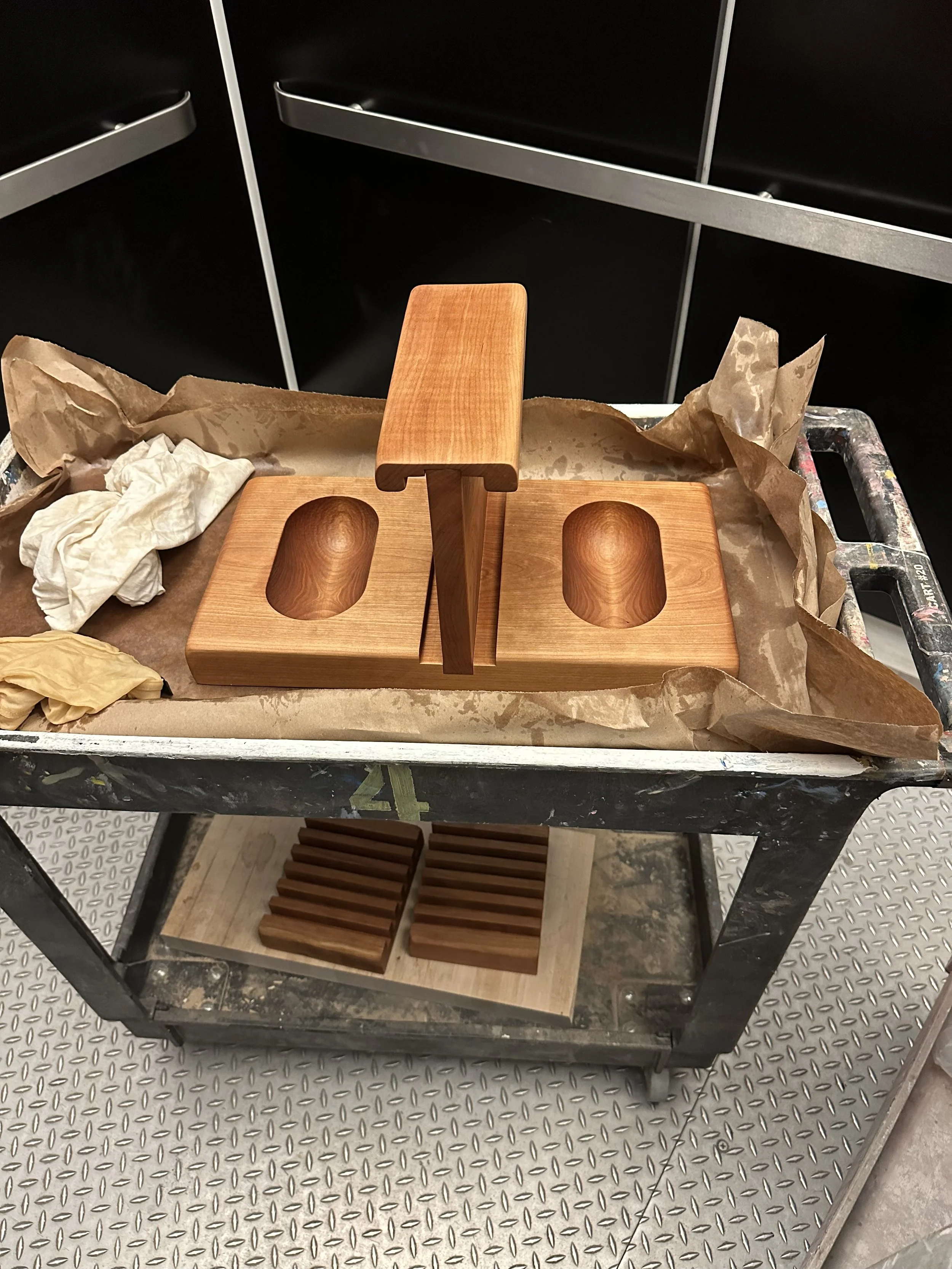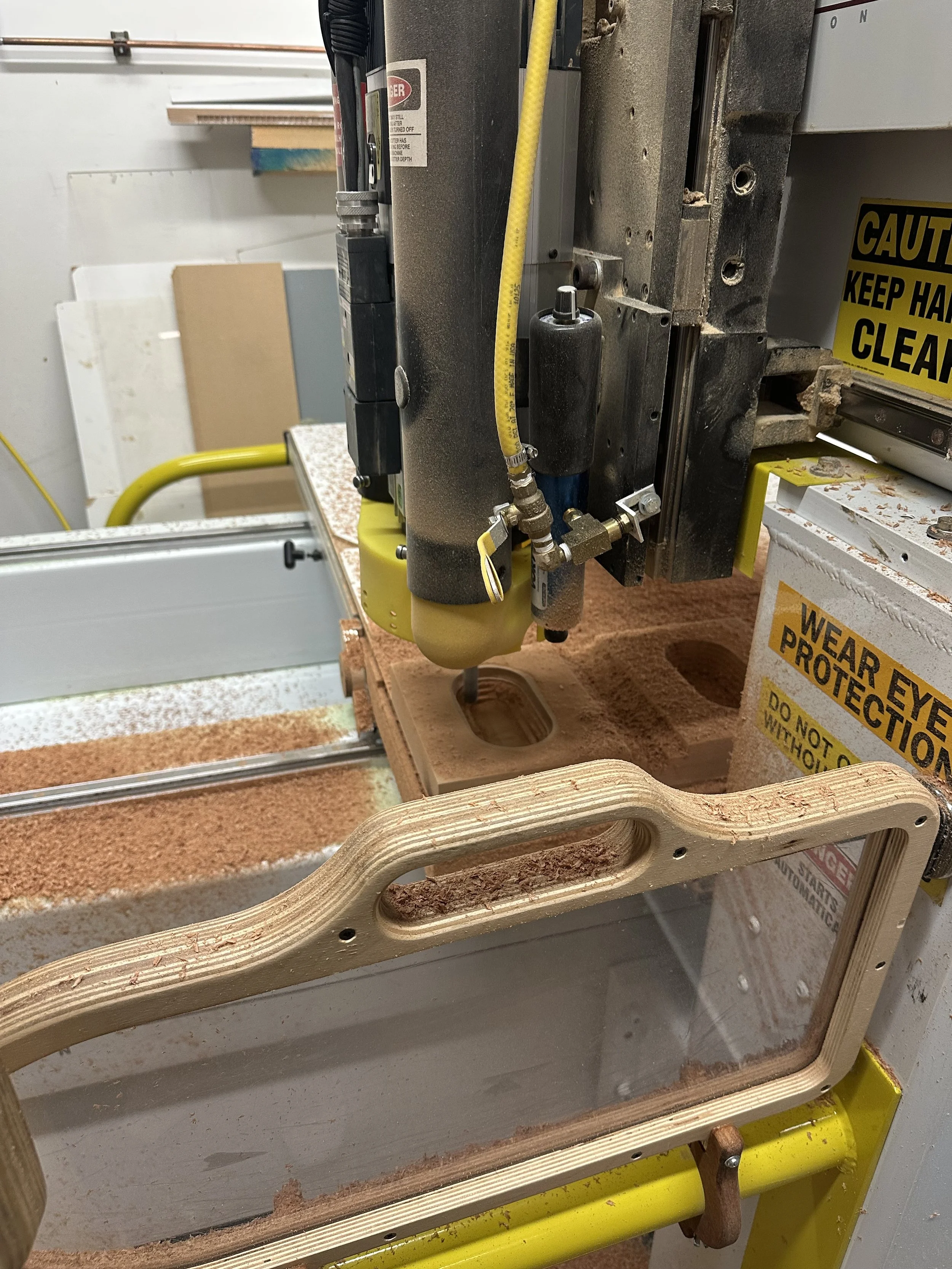 The body of the machine is cherry wood, Evan helped me cut some of the components with a computerized router.