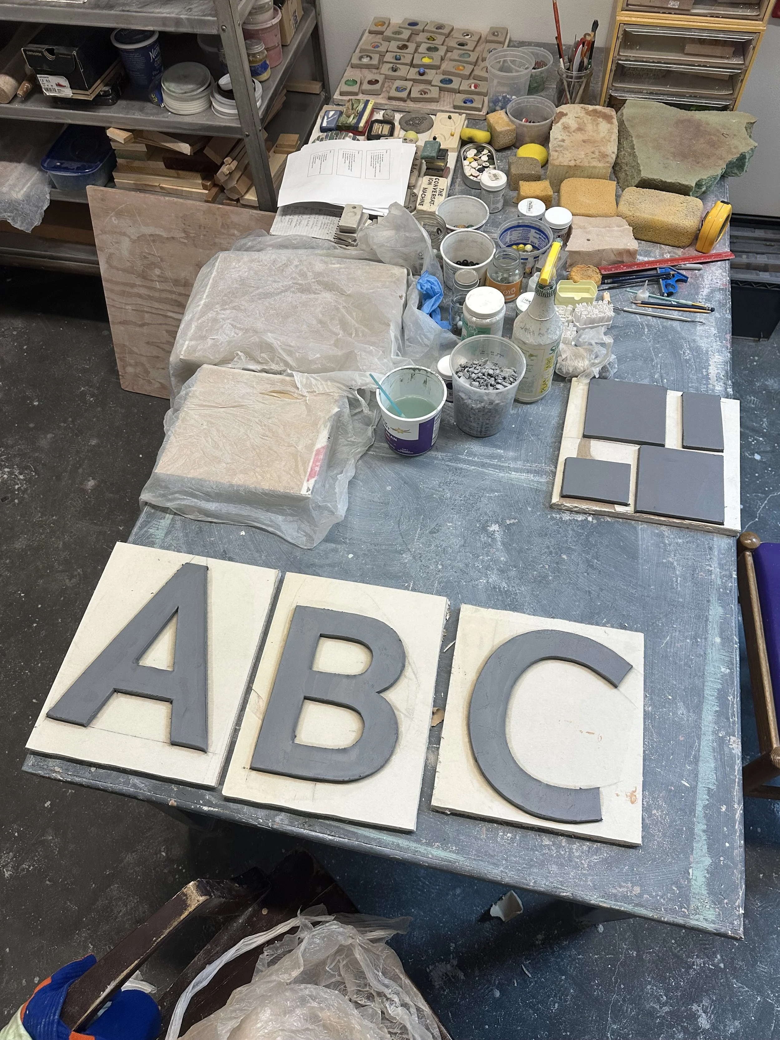 On my first site visit to Bemis in March, I saw this paper alphabet above the computer area in the Children’s Space and I knew I wanted to make a ceramic alphabet to replace it. I didn’t immediately have an idea for what the theme of this alphabet would be. I knew that I wanted it to be interesting and engaging to look at. I wanted to make something that could potentially distract the kids from their screentime.