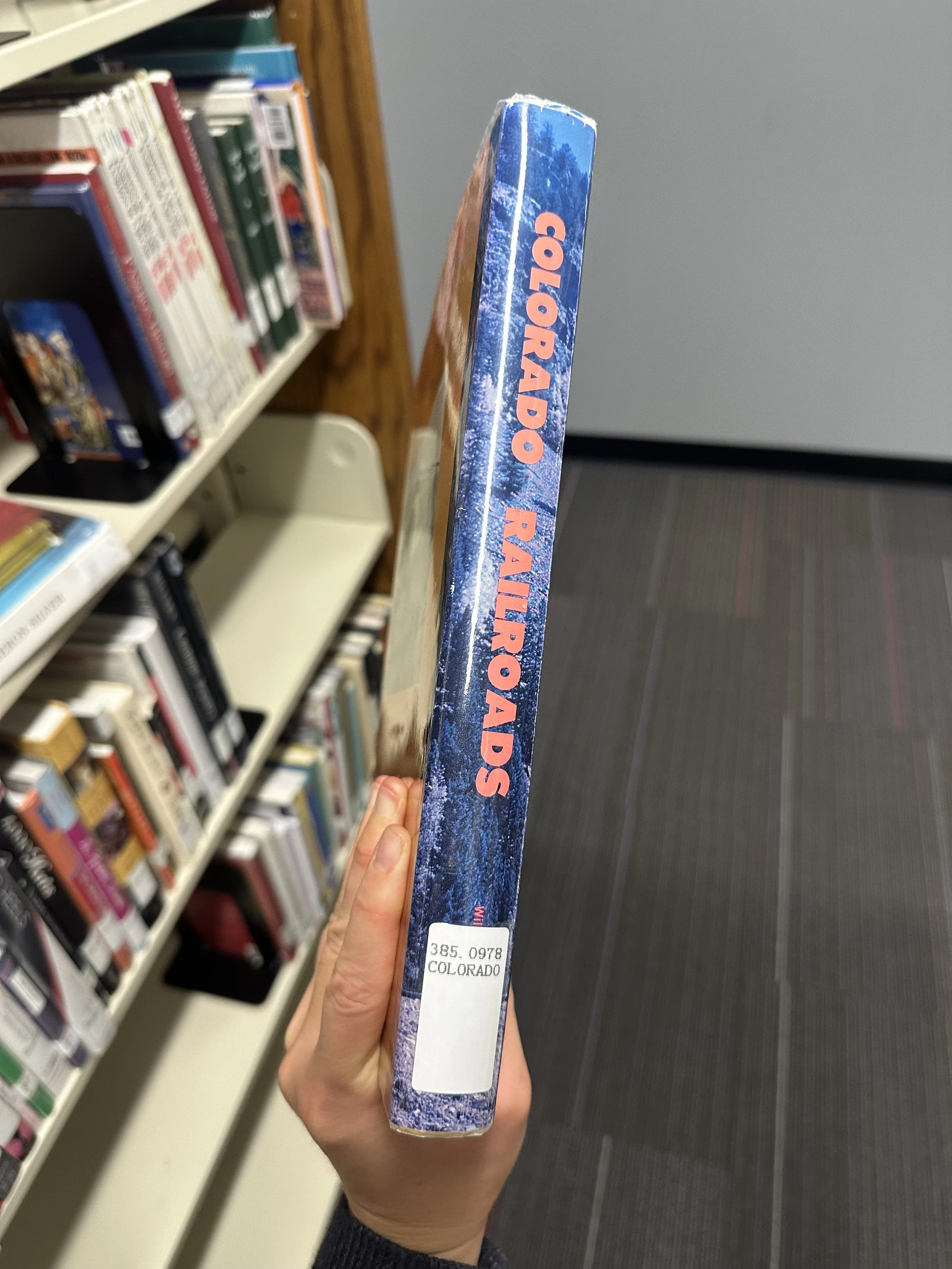 So, a little background on the Dewey Decimal System. The Dewey Decimal system is a library classification system that was created by the librarian, Melville Dewey in 1876. This System organizes books based on their contents, their subjects. The core of a dewey number consists of 3 digits and each of those digits hold information about any given book. Let’s take for example this book on Colorado Railroads from the stacks here at Bemis. 385. The 3 means this book falls under the classification of Social Science, the 8 narrows that to commerce, communications and transportations, and the 5, corresponds specifically to railroad transportation.
