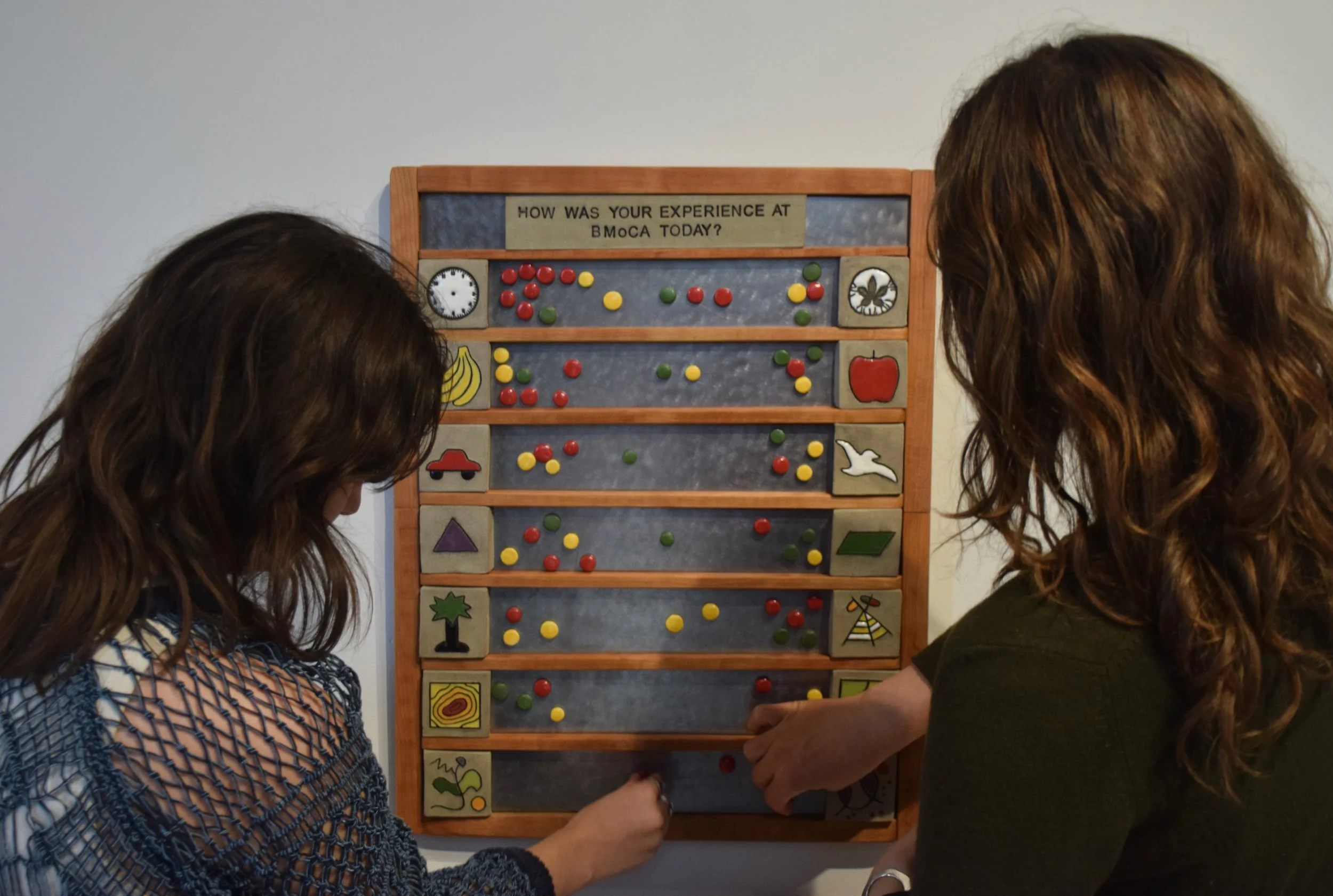 This sculpture uses a public survey format to encourage visitors to consider their time at BMoCA in new ways. How do you qualify an artistic experience? How is meaning co-constructed between patron and art institution? How do you explain yourself without words?